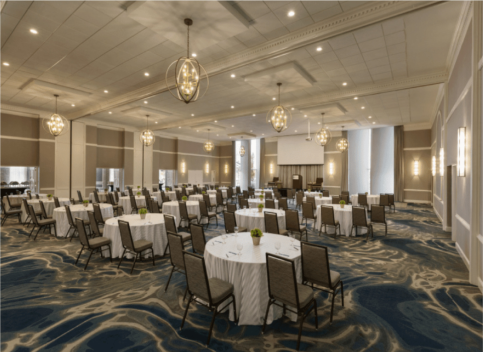 - flexible layouts for presentations, meetings, or seated meals